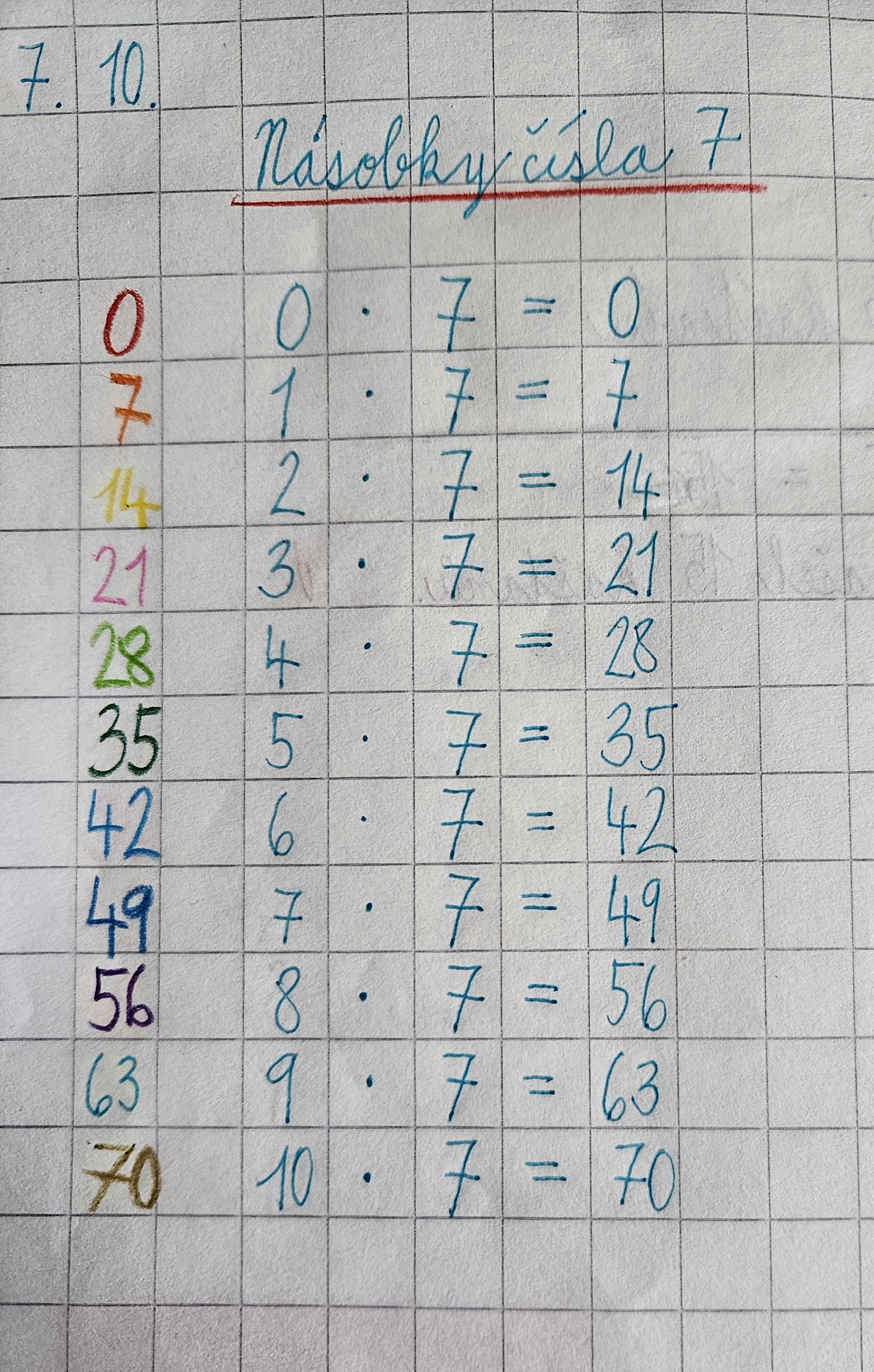 ŘADA NÁSOBKŮ ČÍSLA 7