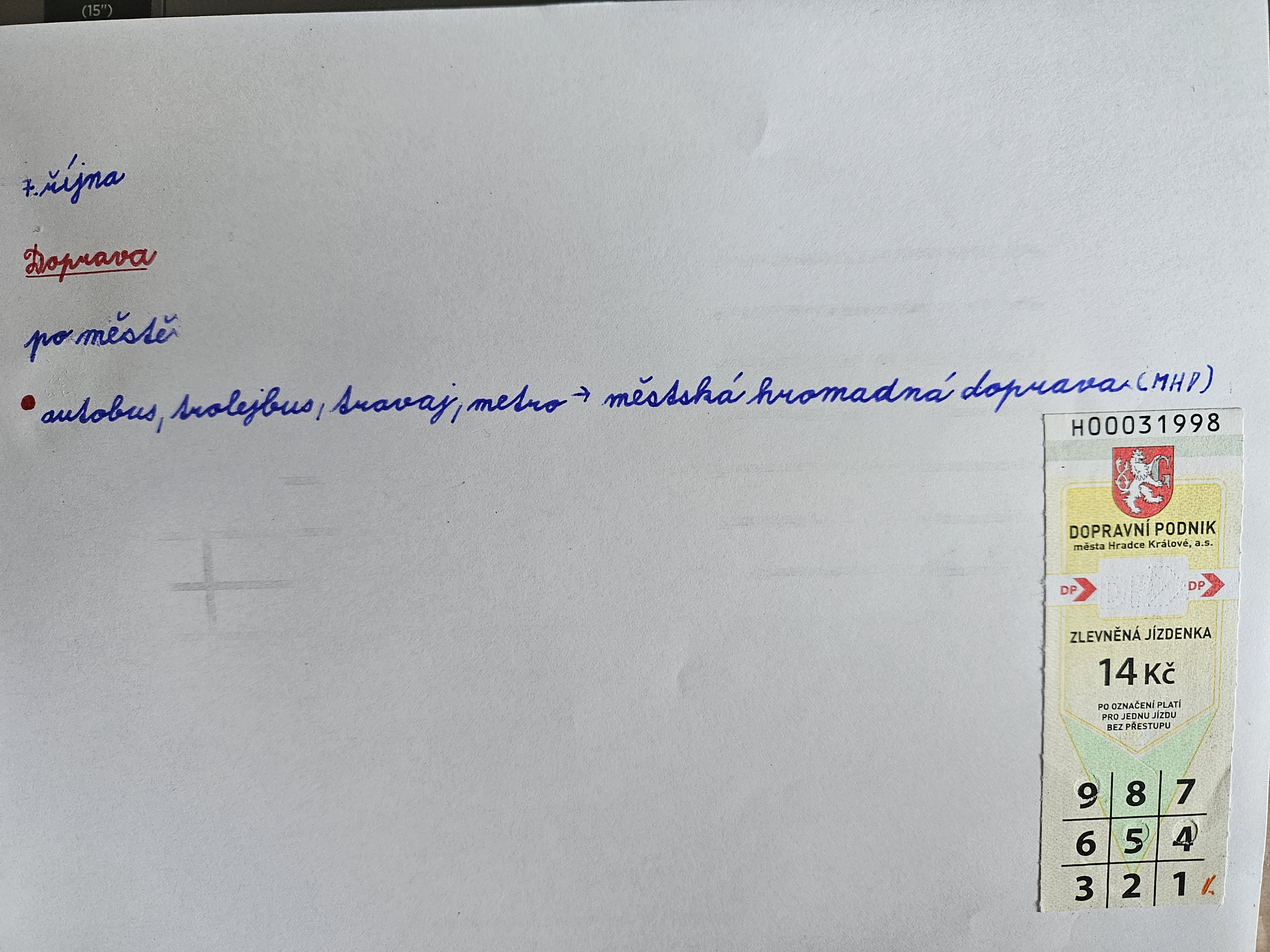 Do sešitu jsme si zapsali krátký zápis a vlepili jízdní řád (udělá jen ten, kdo má sešit a dostal kopie na vlepení, ostatní si doplní až se vrátí do školy)